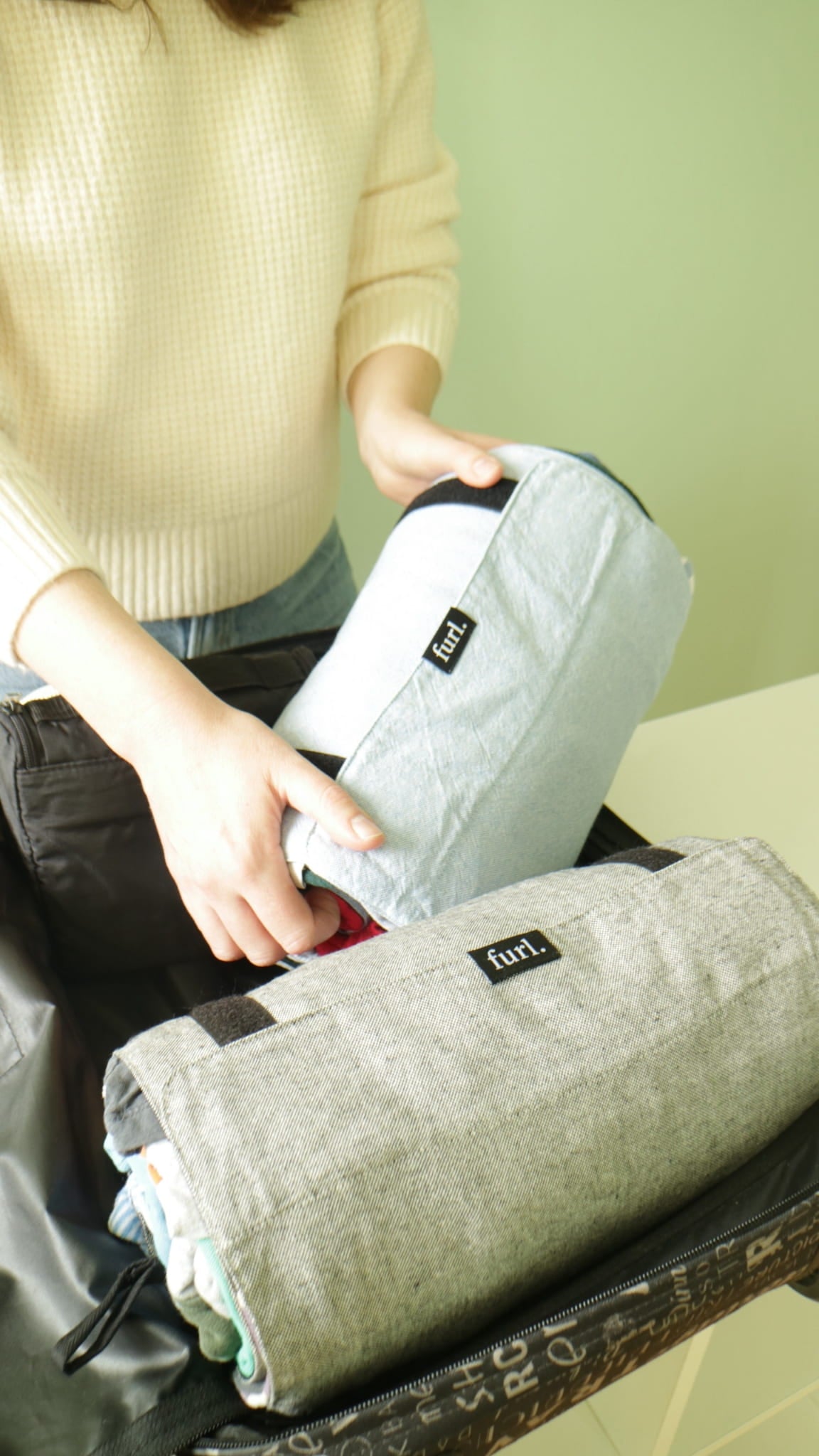 Furl is a packing roll that keeps your clothes compressed, organised, and easy to access — from the moment you pack to every stop along the way.